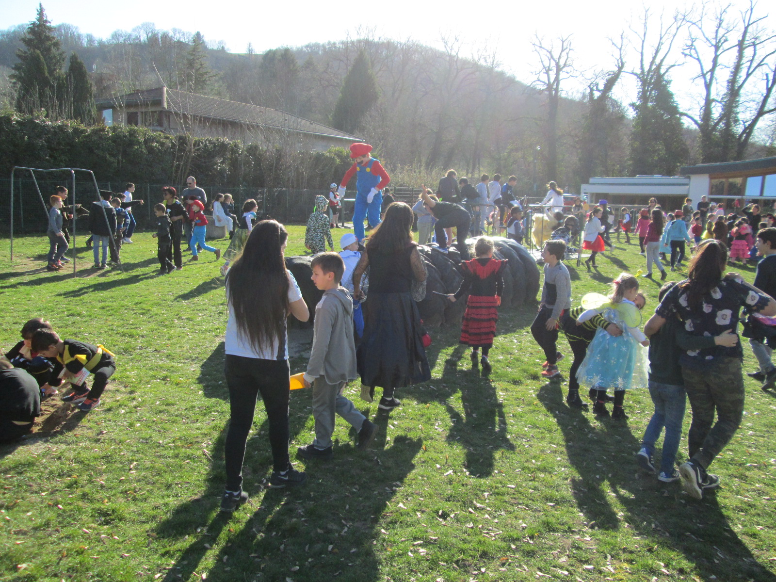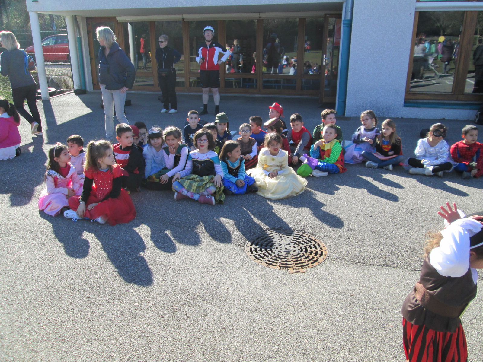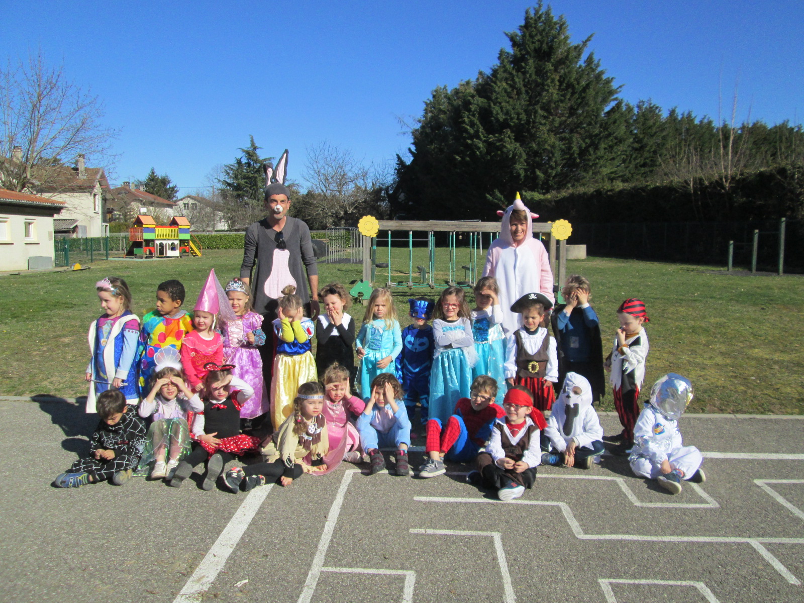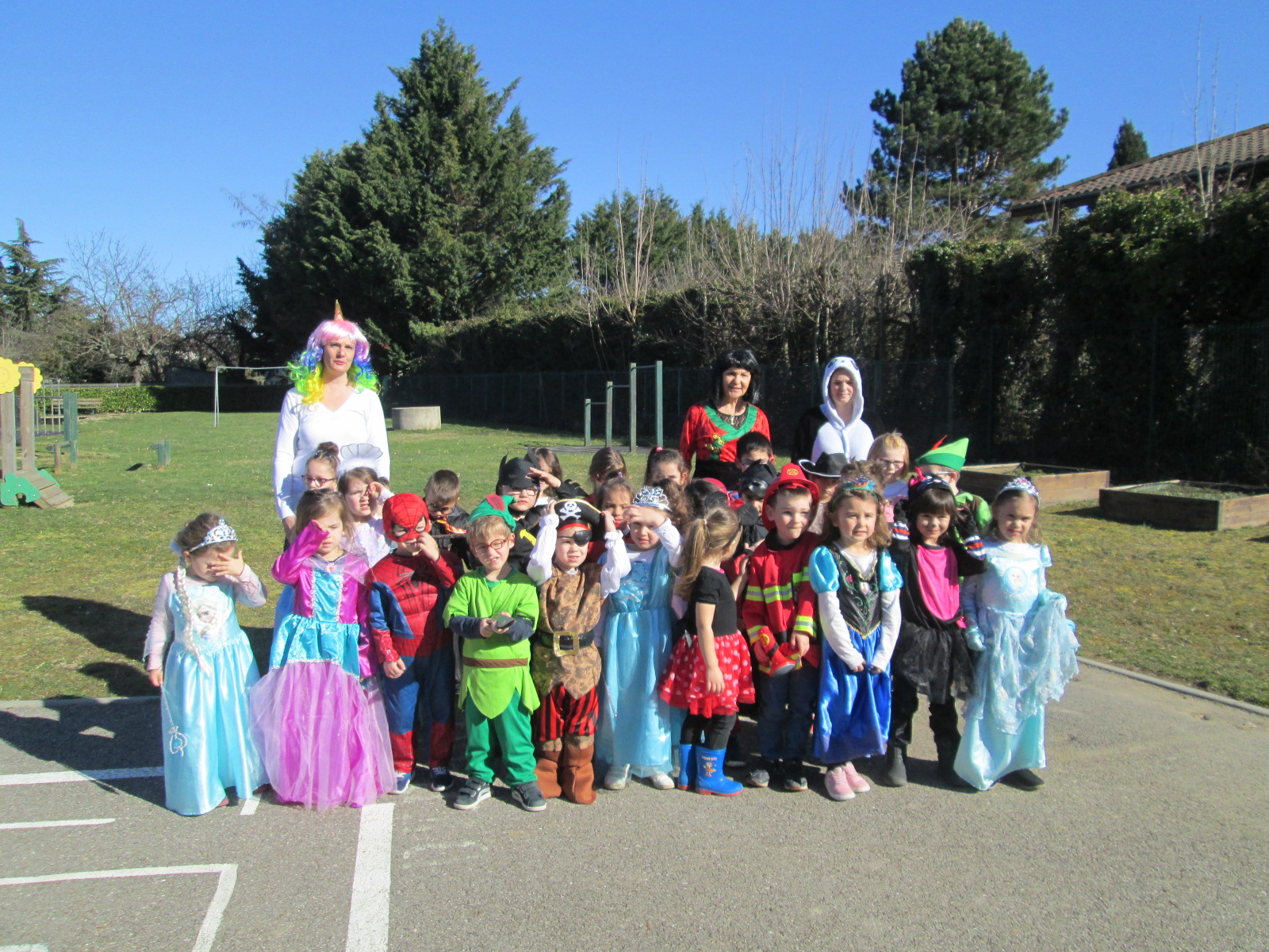 Pour Mardi gras nous nous sommes déguisés et nous sommes allés dans la cour et même dans l'herbe comme il faisait très beau !