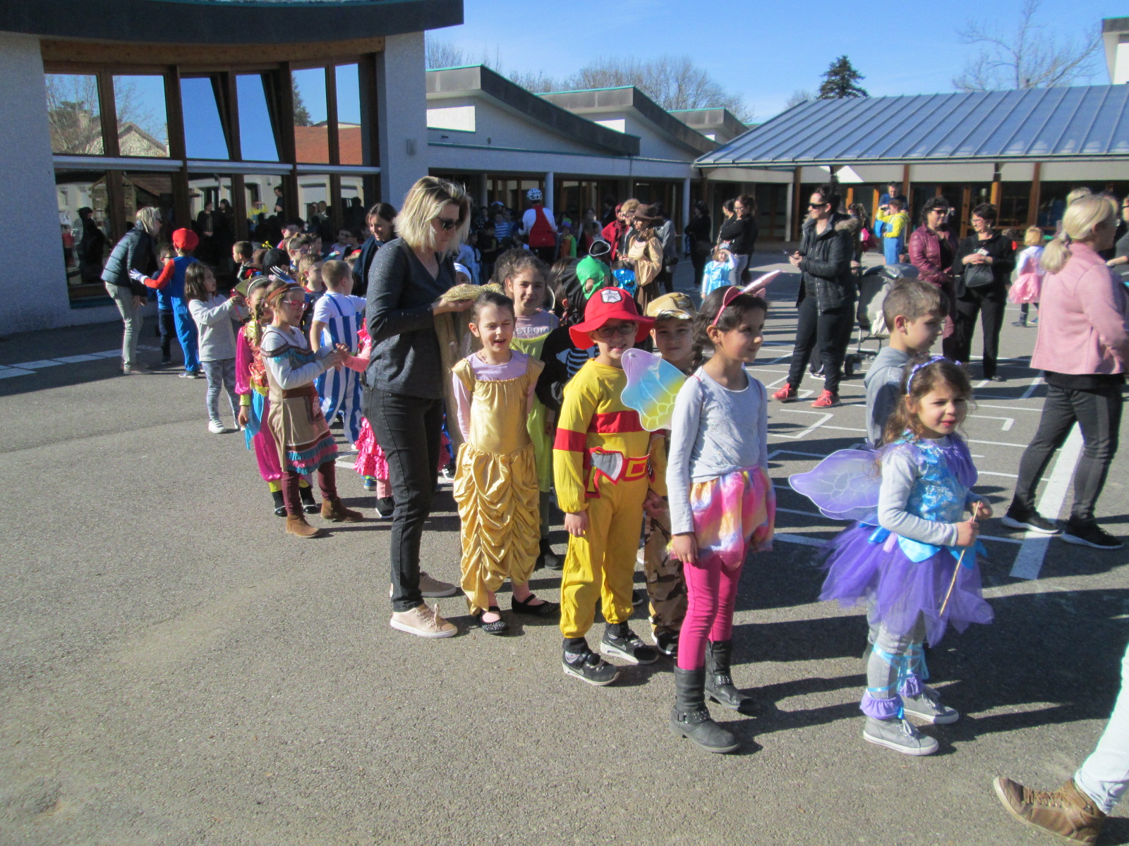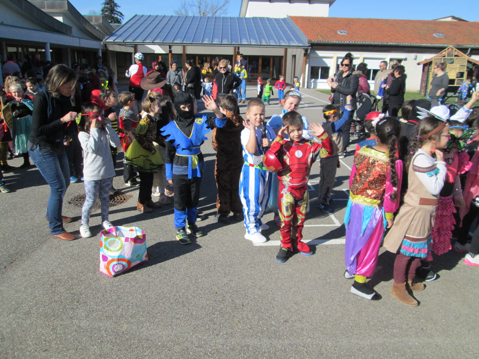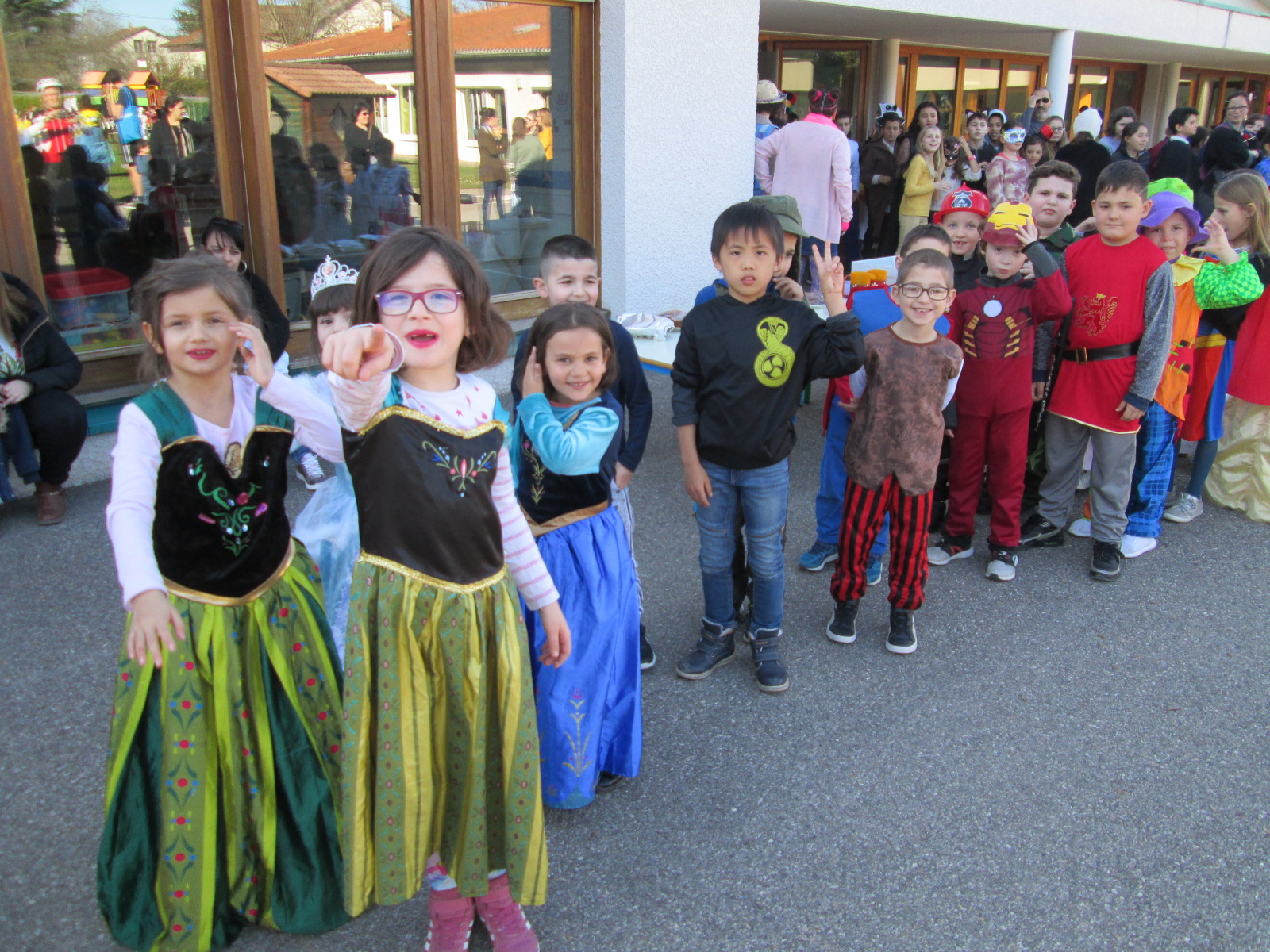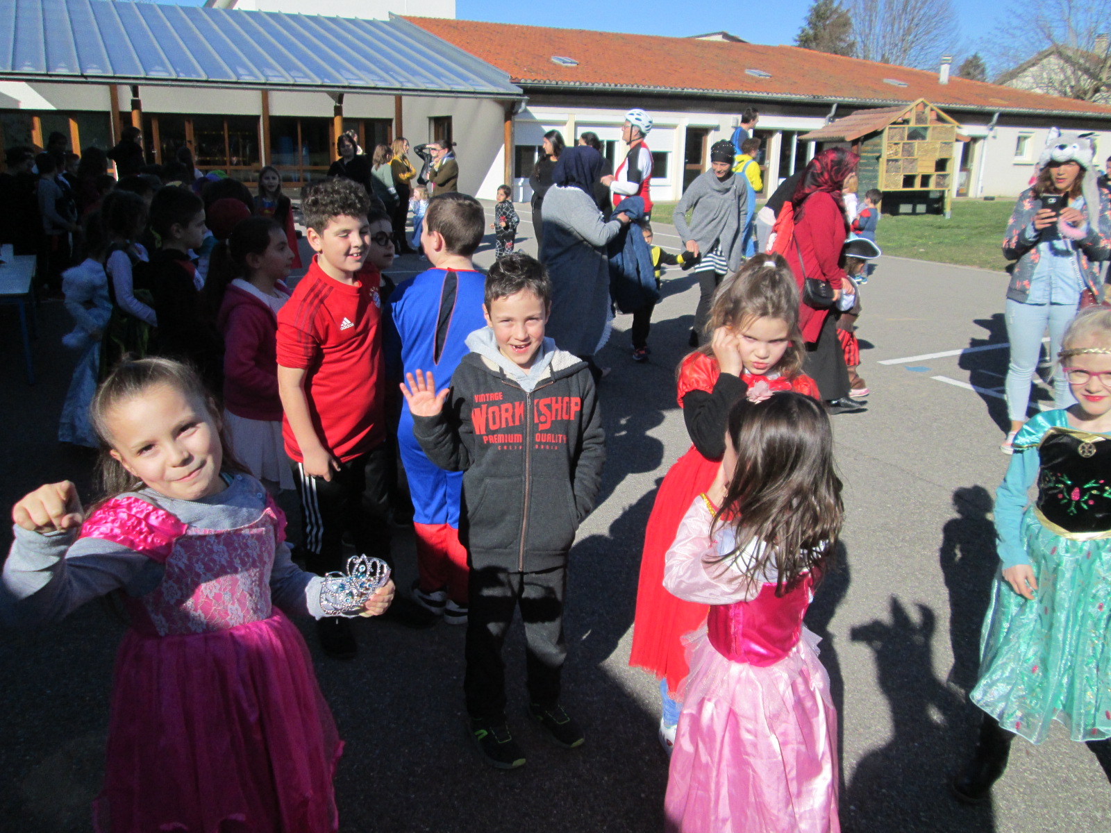 Pour Mardi gras nous nous sommes déguisés et nous sommes allés dans la cour et même dans l'herbe comme il faisait très beau !