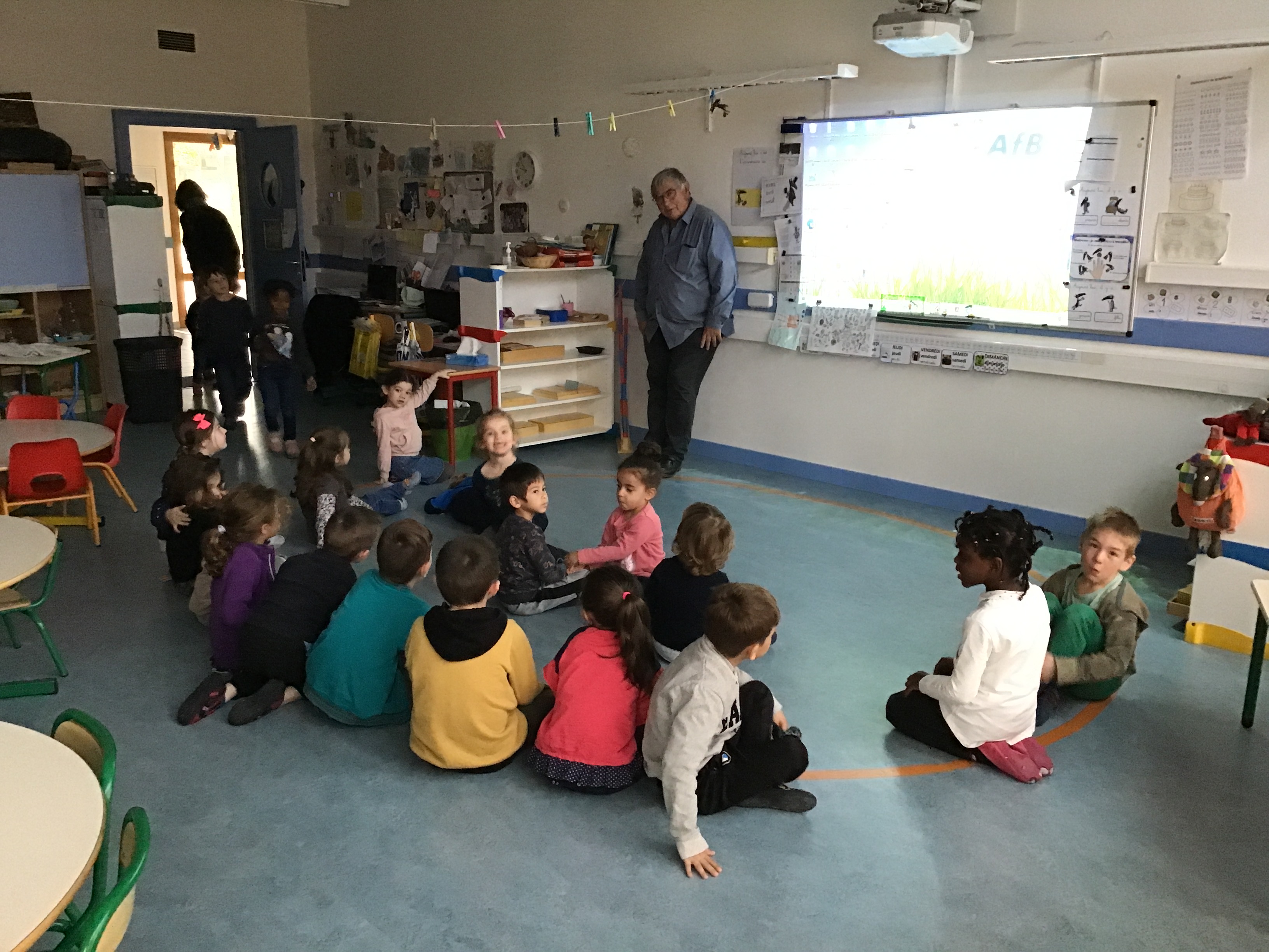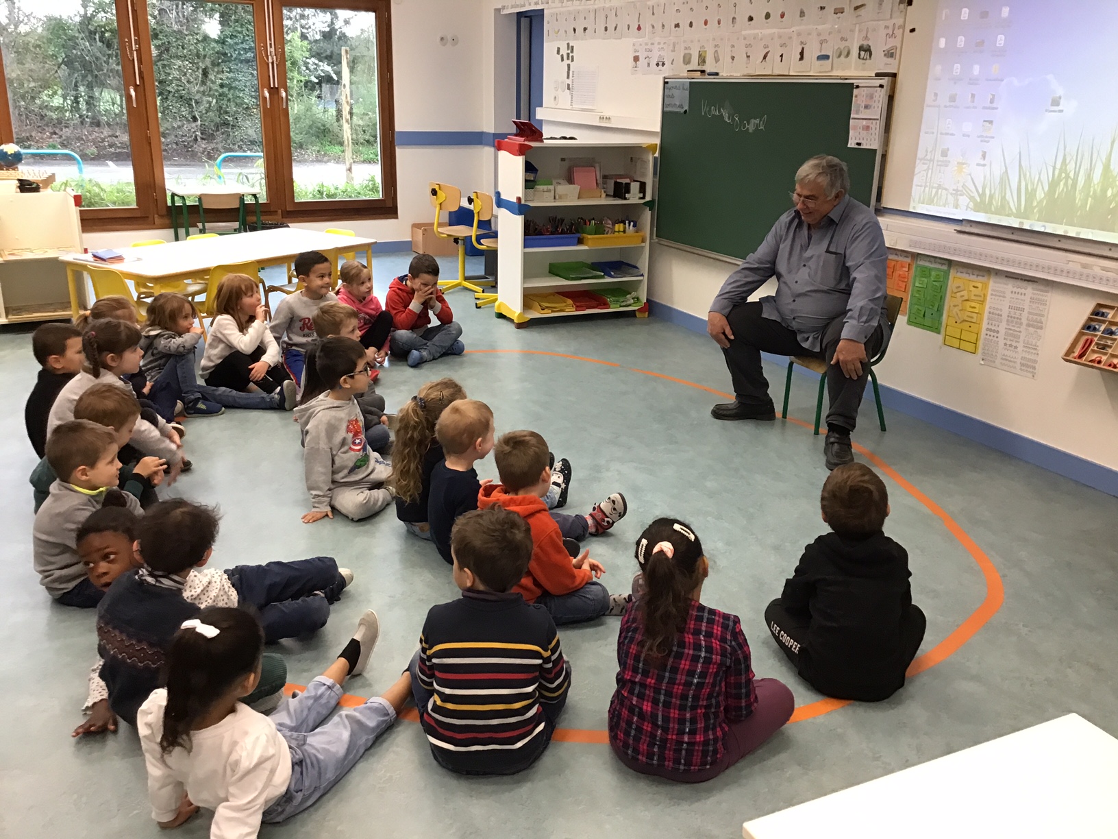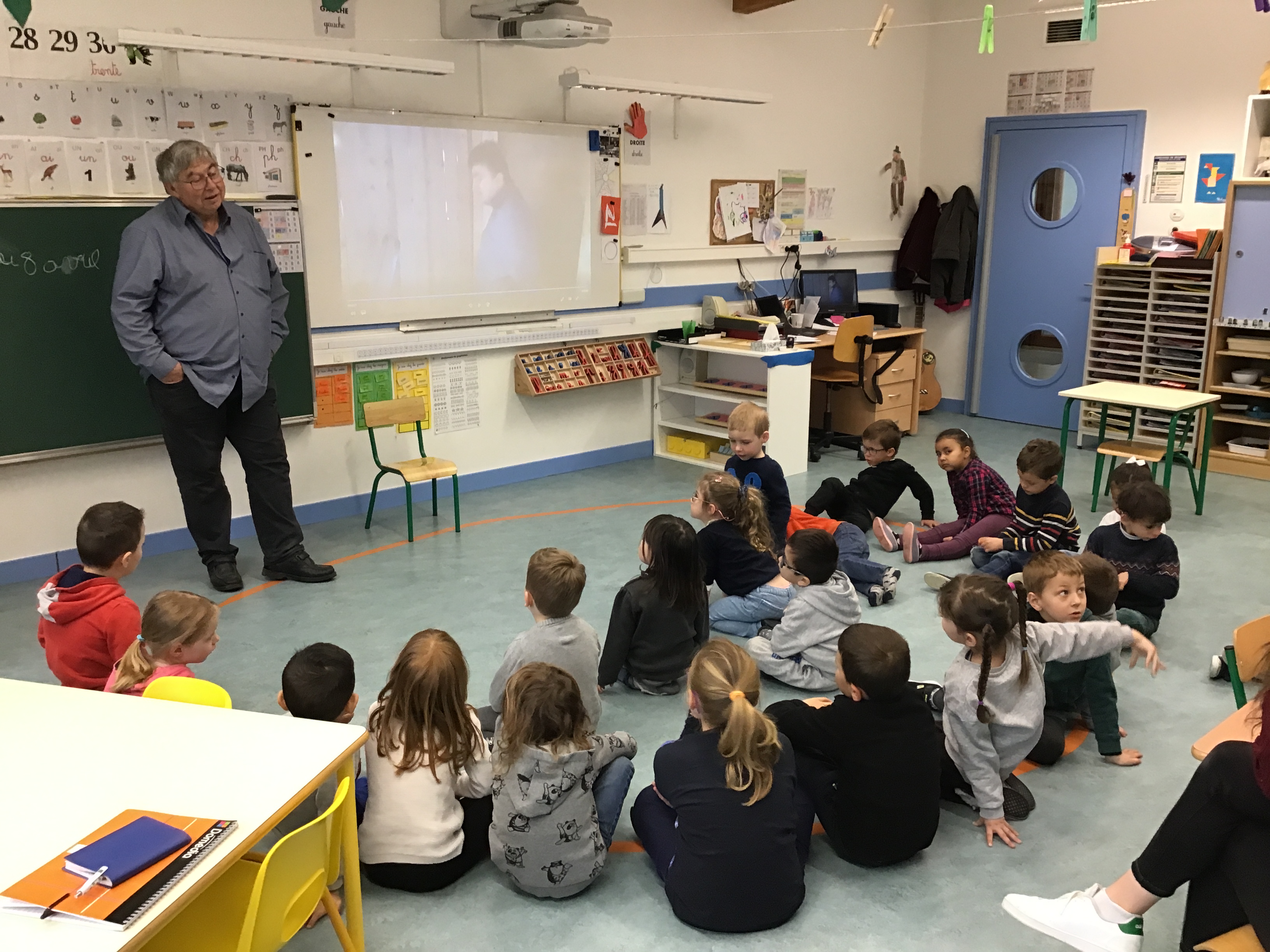 Afin de préparer la fête solidaire du village qui aura lieu le vendredi 15 avril dès 17h00, les élèves de la maternelle ont reçu la visite de Raymond RIBAN.