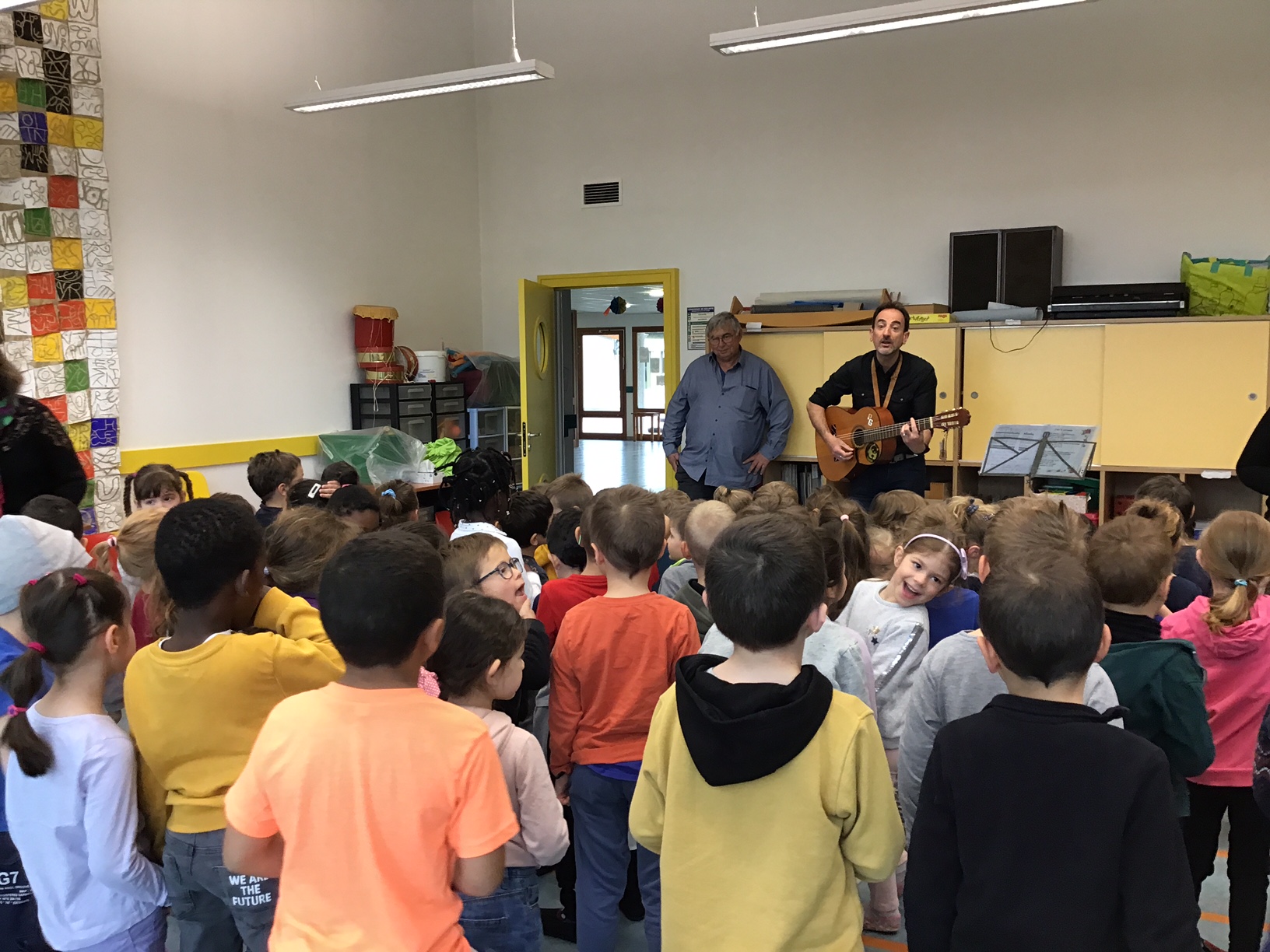 A la fin de sa visite, les enfants des trois classes lui ont donné un aperçu des chansons qu’ils interpréteront lors de l’ouverture de la 6ème Fête Solidaire vendredi prochain sur le perron de la mairie. Une chanson parlant de l’autisme, une autre écrite par les élèves au sujet de l’écologie et une troisième apprise à la chorale de l’école…