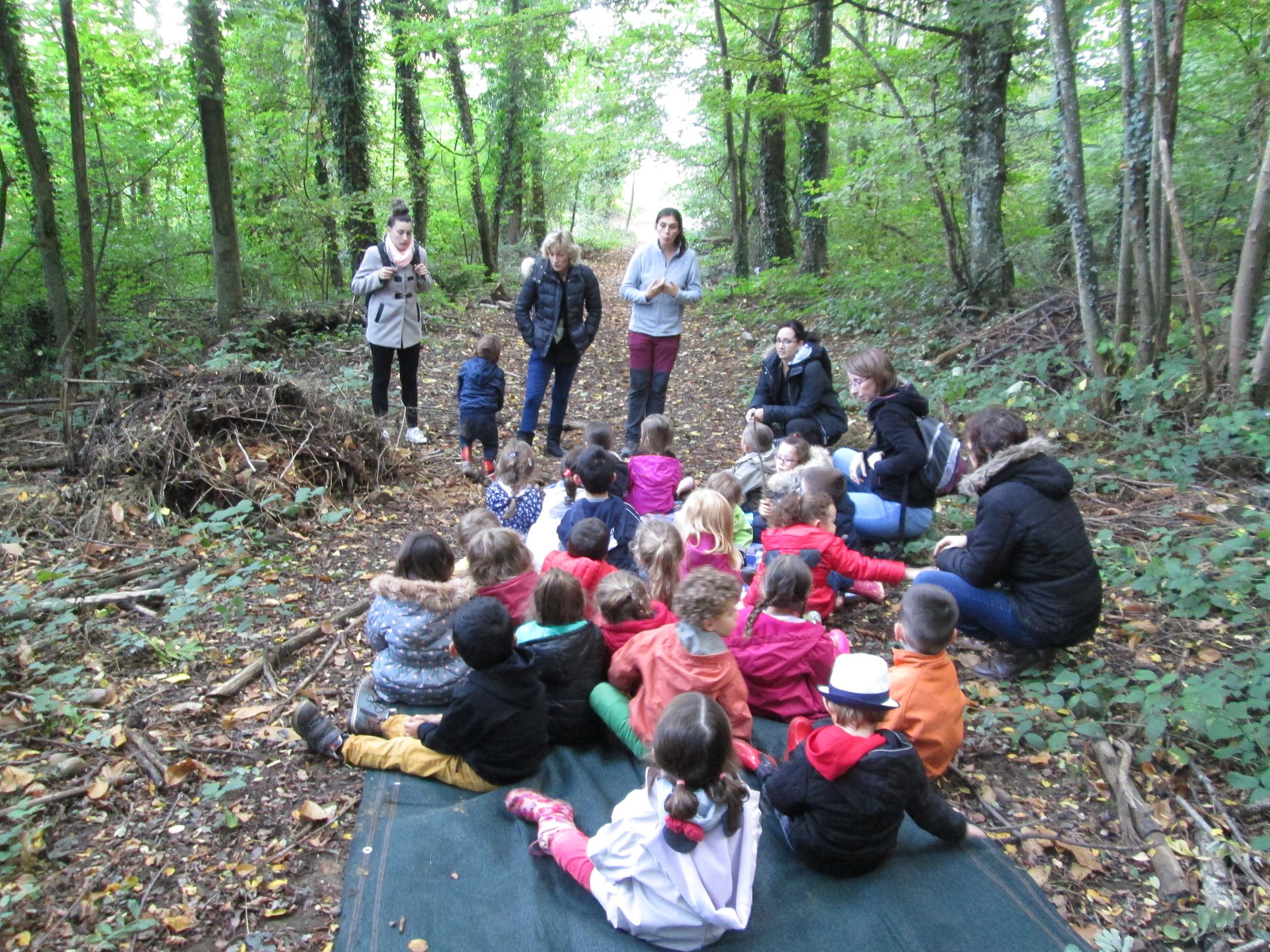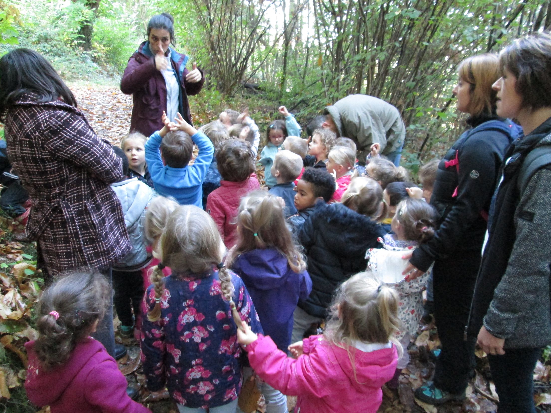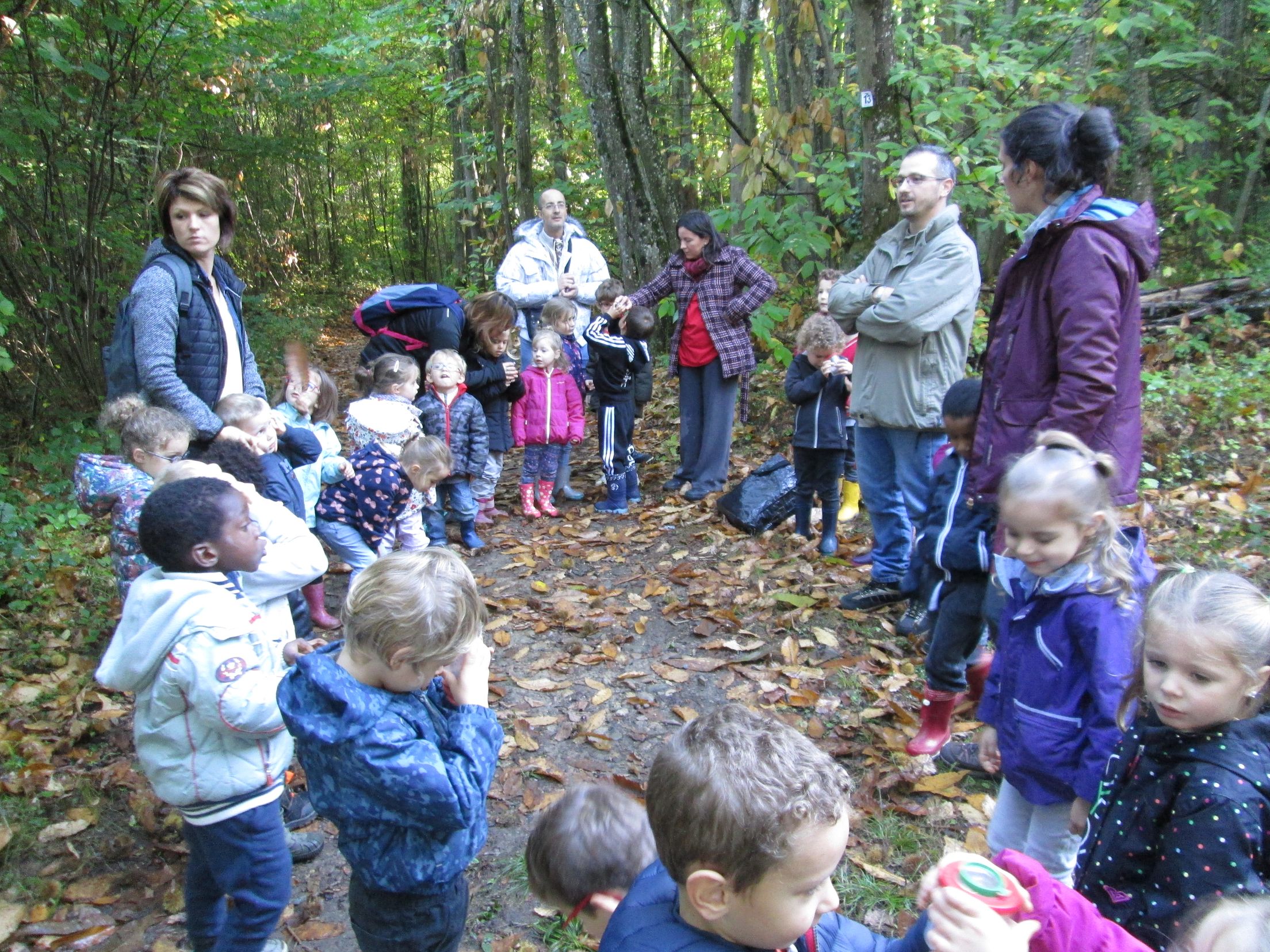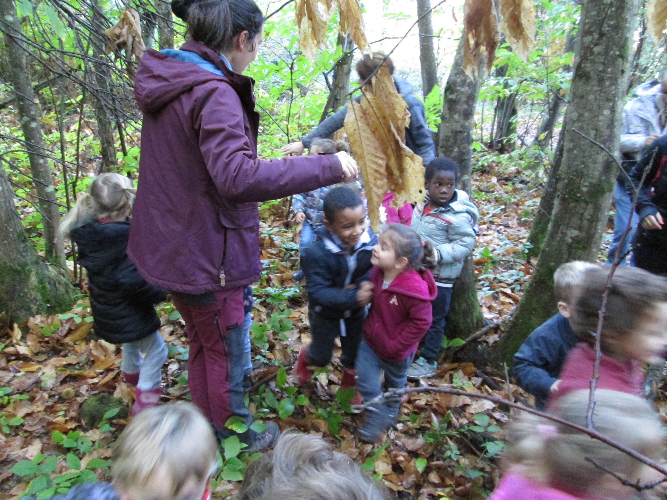 Cliquer sur chaque image pour la visualiser en pleine taille Notre sortie en forêt juste au-dessus de l'école avec Claire, notre guide Nature.